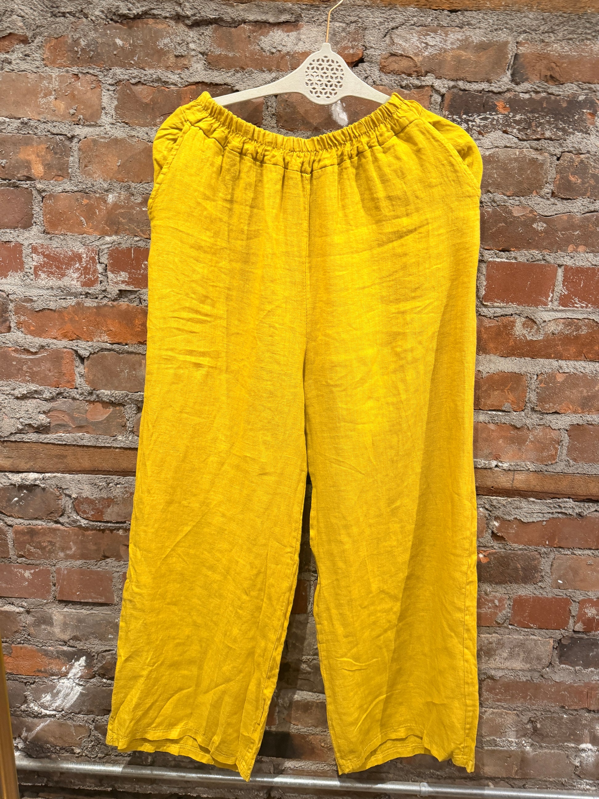 Gorgeous 100% pure linen trousers. Elastic waist, pockets and slightly wider leg.