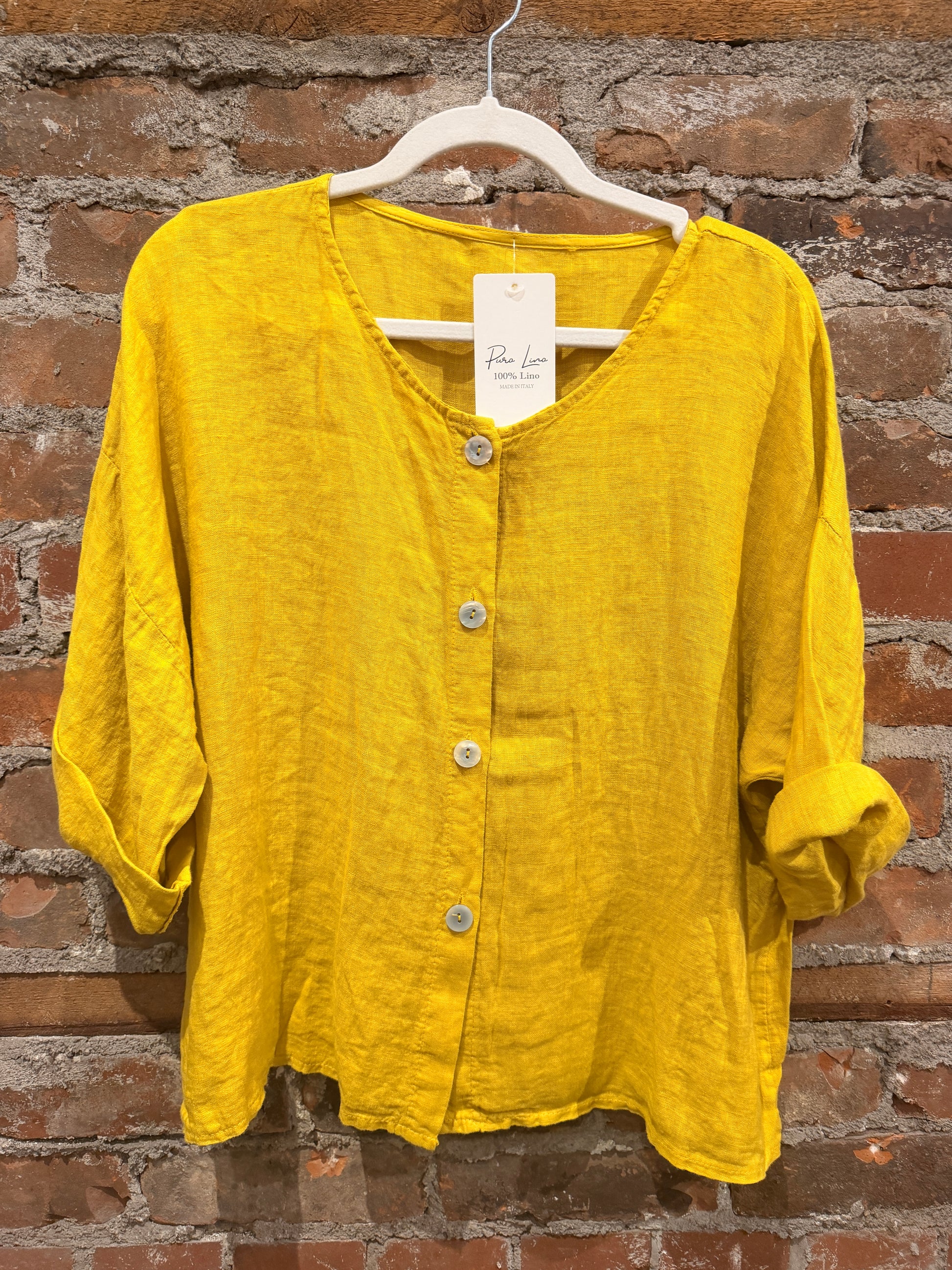 Gorgeous 100% pure linen cardigan shirt. Pearl buttons, relaxed feel. Wear the buttons in the front or the back!