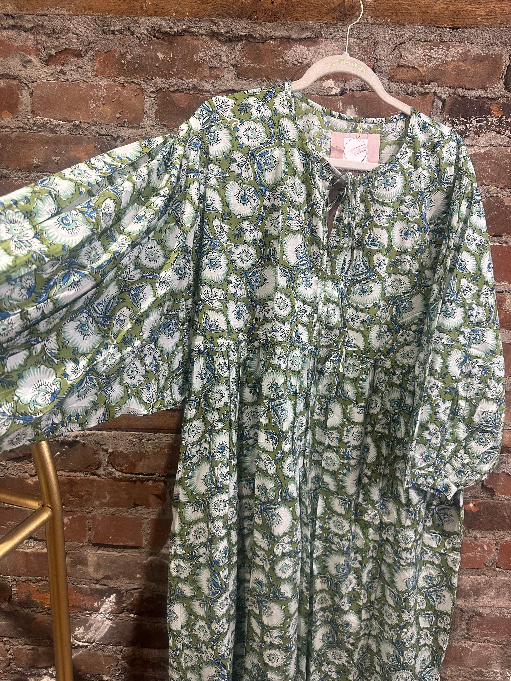 Drift into effortless beauty with this dreamy hand block printed maxi dress, made from 100% pure Indian cotton. Each piece is lovingly crafted by master artisans from small collectives, using age-old block printing techniques that bring soul and story to every thread.