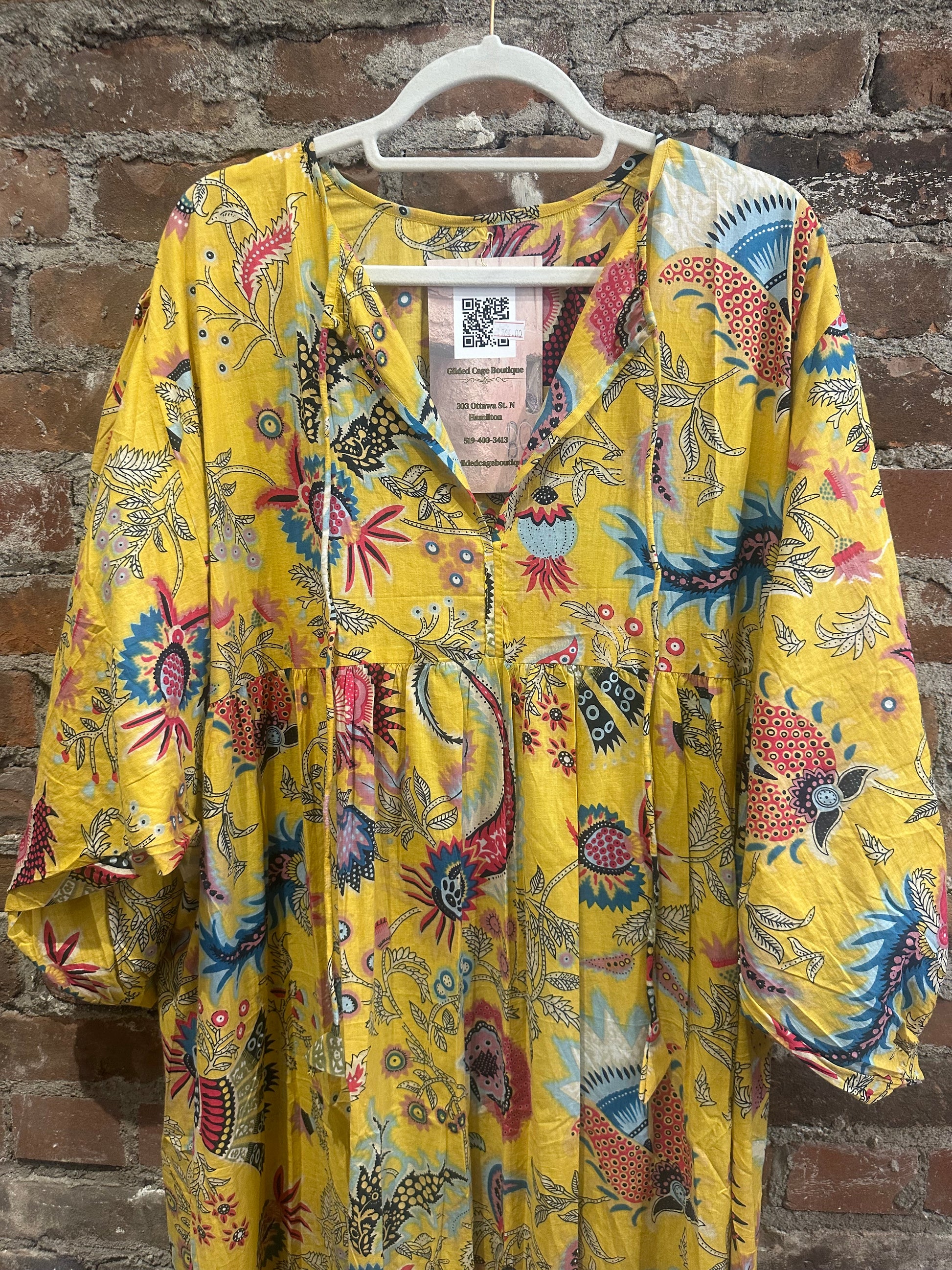 With its flowing silhouette, empire waist, and airy balloon sleeves, this dress moves with you—light, easy, and free. Designed to flatter most body types (S–XXL), it’s the kind of piece you’ll want to live in—whether you’re wandering markets, dancing barefoot at golden hour, or just soaking up a slow day at home.