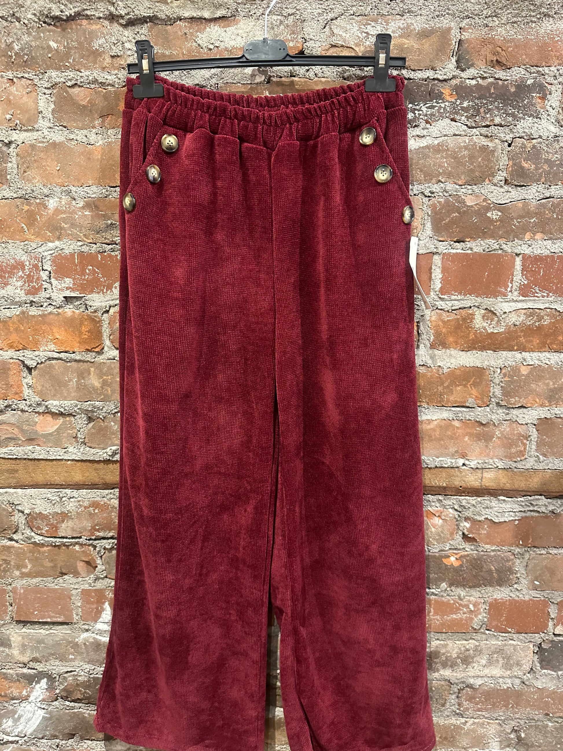 Ultra soft and easy. Elastic waist, button detailing on pockets. Straight leg