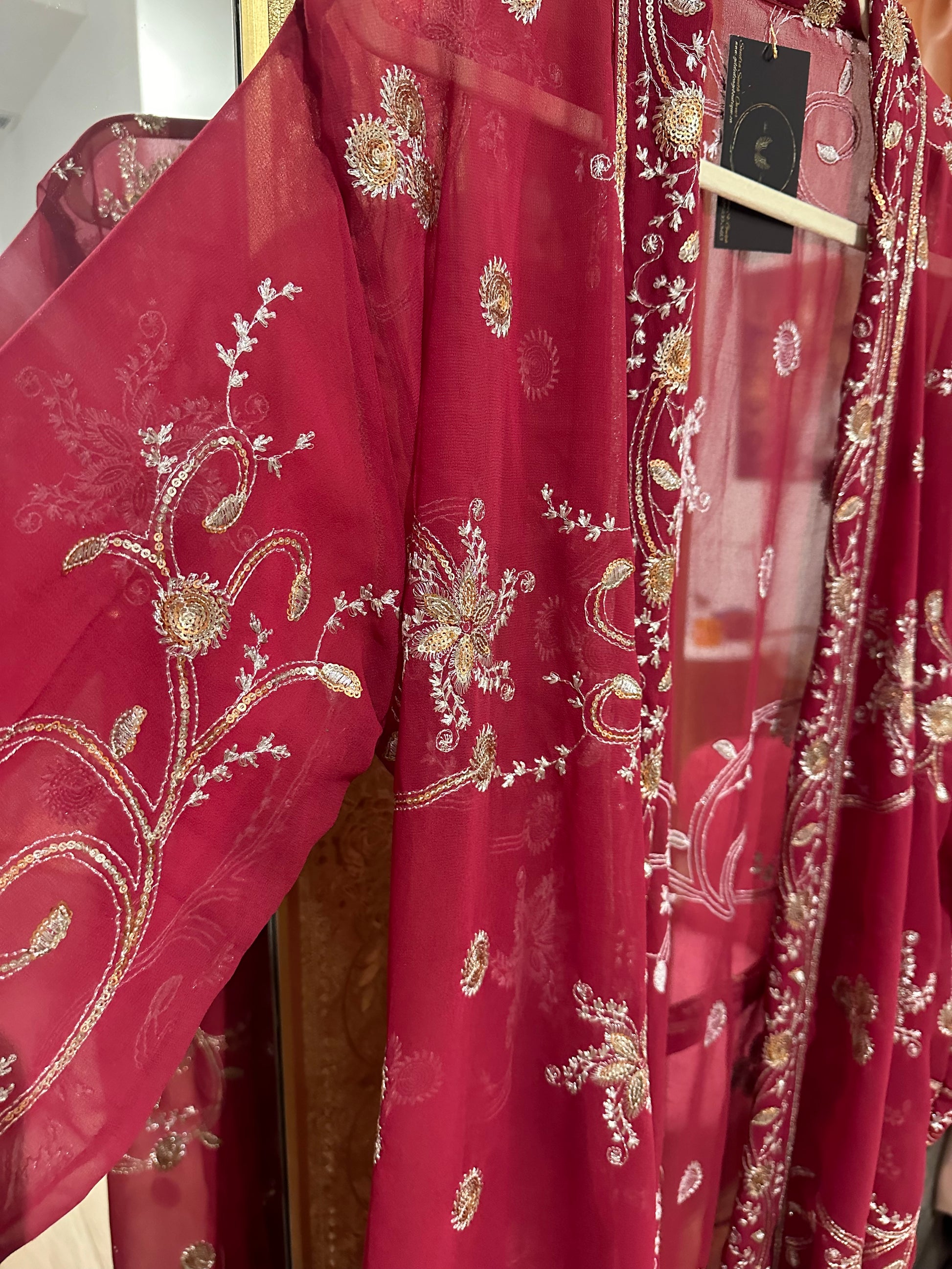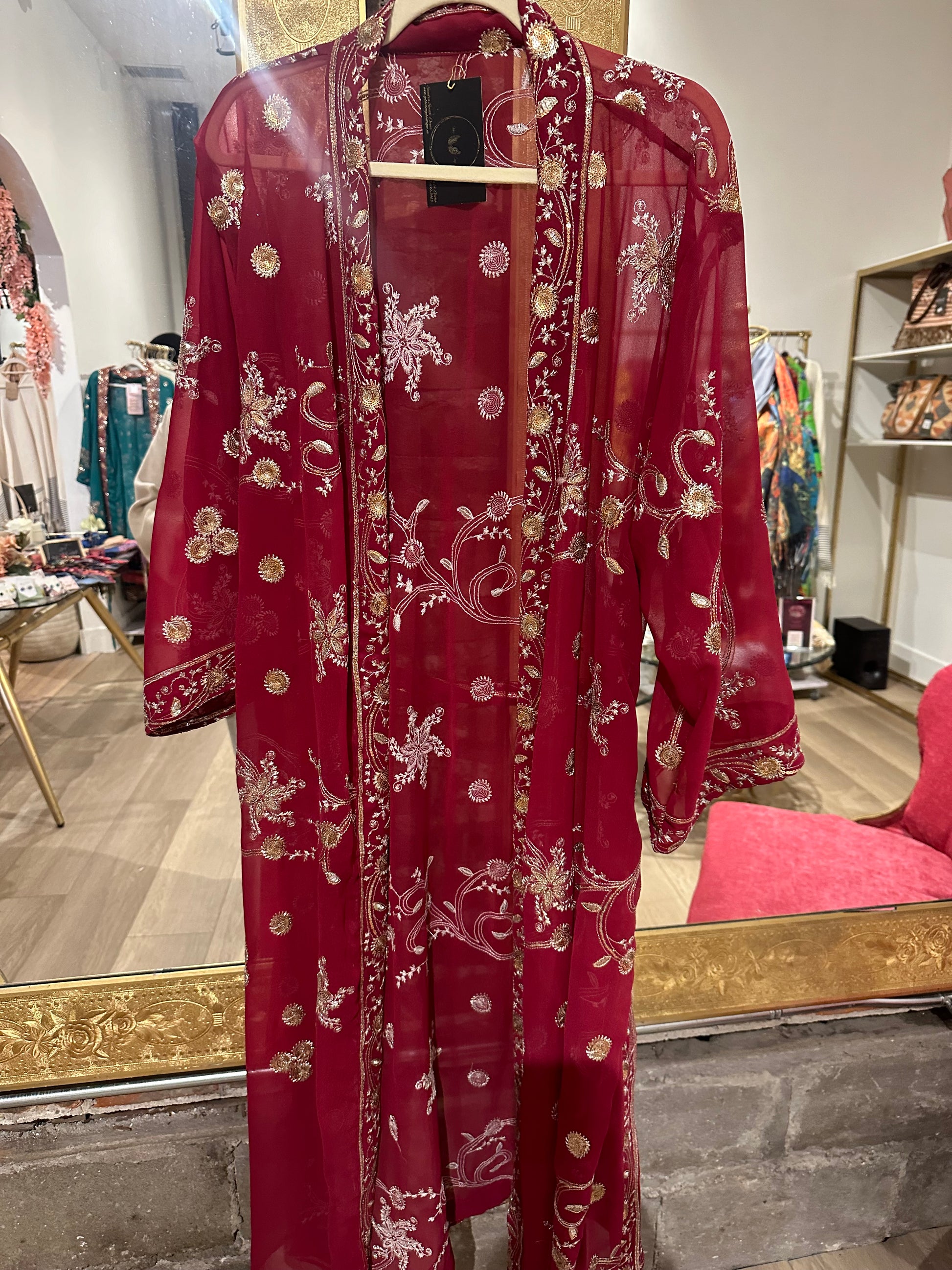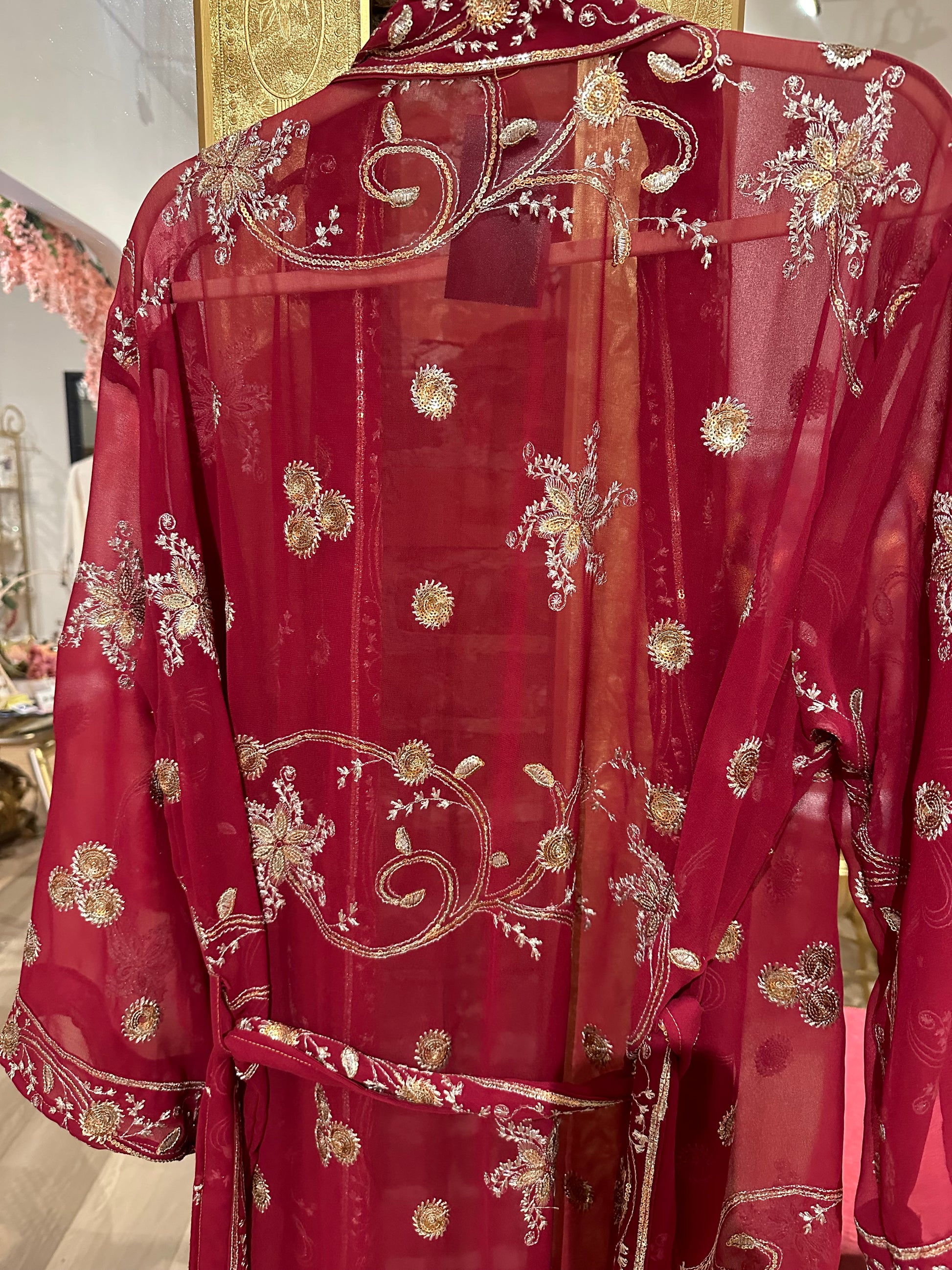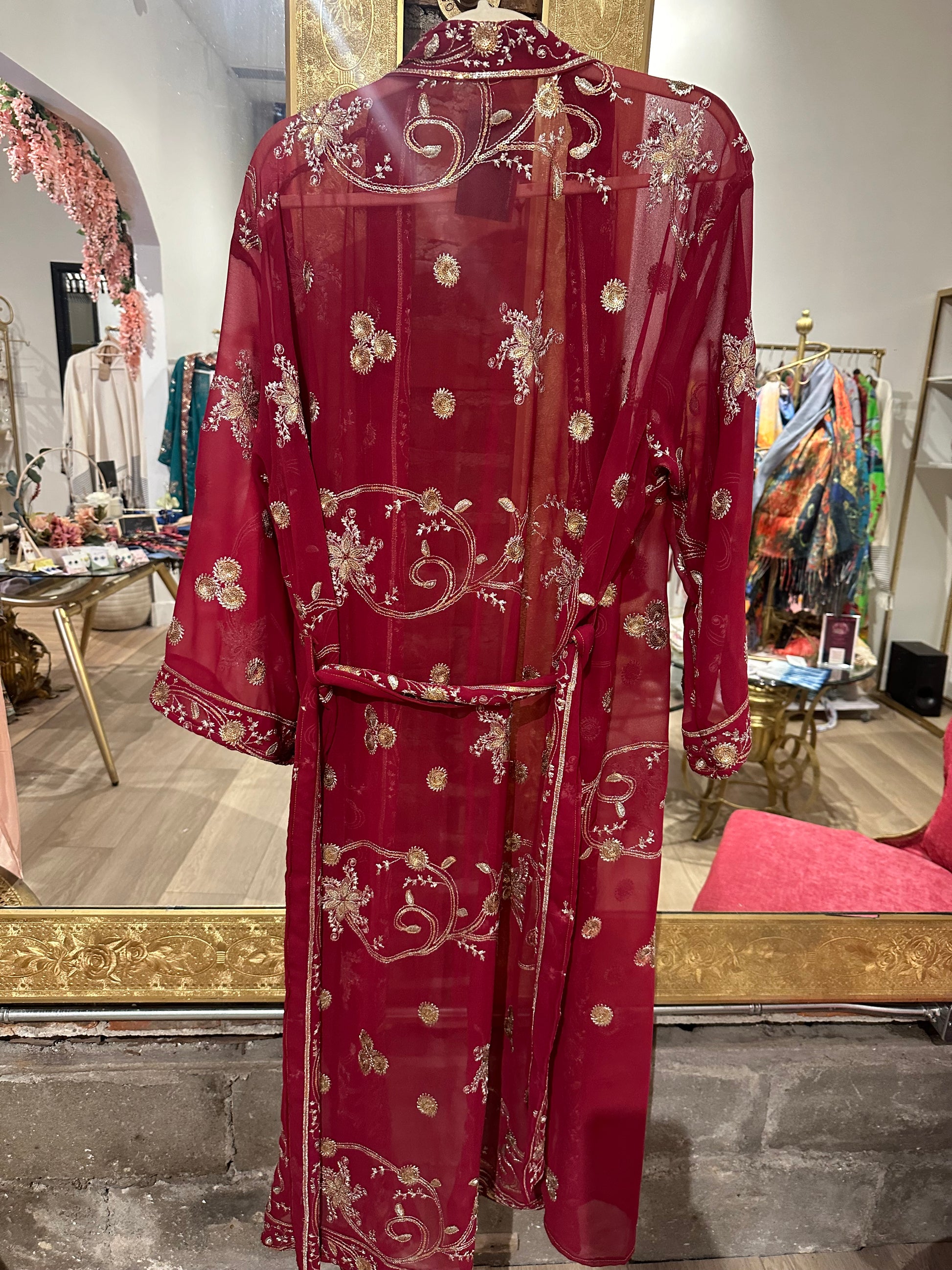 Vintage Hand beaded short kimono - red/silver